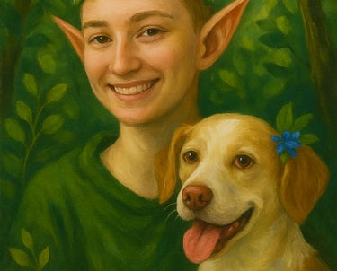 Invents, tests, and fine‑tunes every toy design in the workshop. Specializes in quality control and giggle testing for maximum fun durability. Pepper is always joined by his loyal golden retriever, Cocoa, who helps test squeaky toys and delivers warm cuddles during long nights in the toy lab!